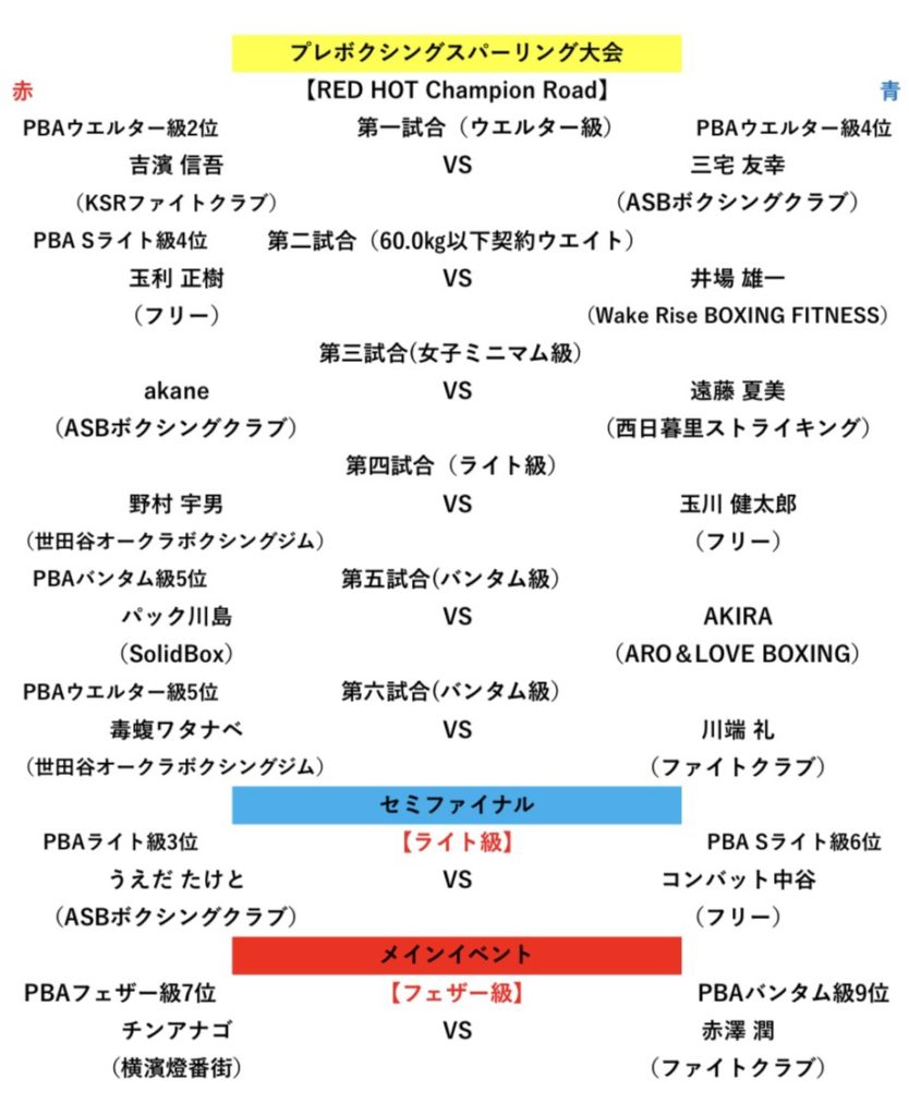 プレボクシングスパーリング大会選手&セコンド説明