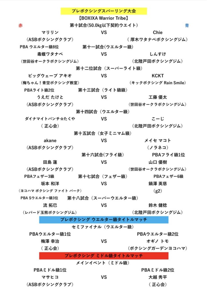 10.19プレボクシング【BOXIXA Warrior Tribbe10.19】選手/セコンド説明