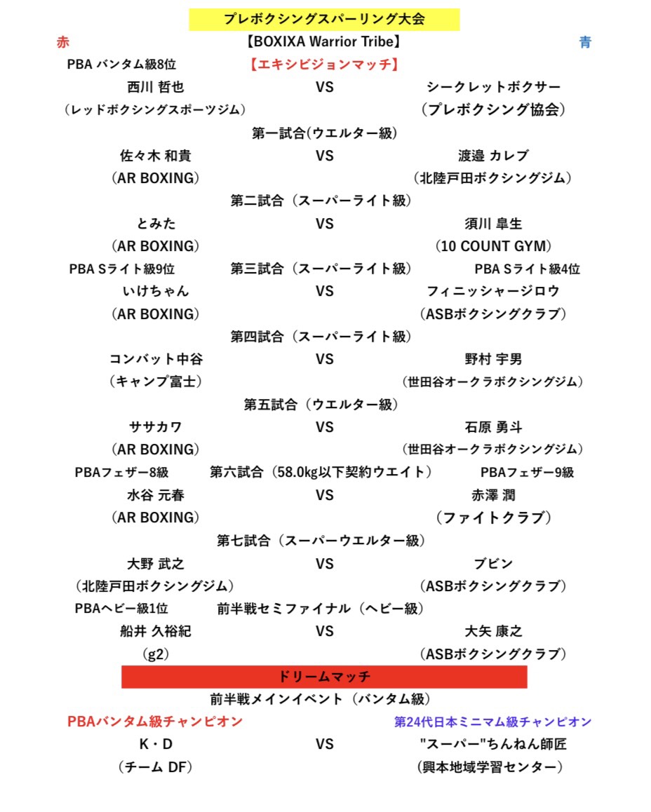 10.19プレボクシング【BOXIXA Warrior Tribbe10.19】選手/セコンド説明